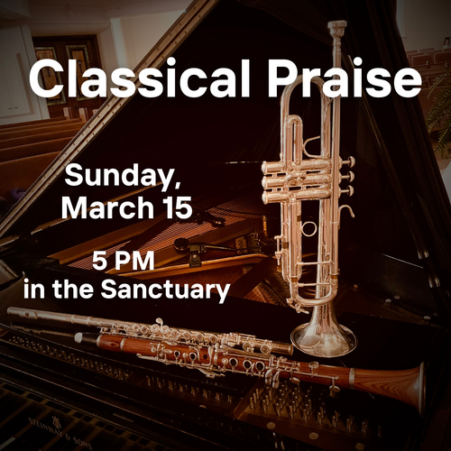 On March 15, the Creative Arts Council presents Classical Praise, a concert featuring musicians who are members and friends of our church. If you would like to share a piece of music that evening, please fill out the online form below. If you would like to just come and listen, mark Sunday, March 15, at 5 PM on your calendar now! This will be a special evening of offering musical gifts to the Lord and to each other.